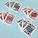 We have covered the faces in a custom color scheme to match the back design and complete the deck's look. Spades and Clubs are very dark blue, and Hearts and Diamonds are light pink.