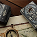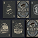 - The cards have a black background with intricate vintage-style illustrations, including a pirate skull on the box and an anchor with a banner reading "The Sailor" on the card back.